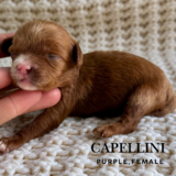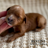 These puppies are projected to be petite–mini in size and will have soft wavy, low-shedding coats—perfect for families looking for a companion that is both adorable and easier on allergies. We expect them to be in beautiful red and red abstract coloring.